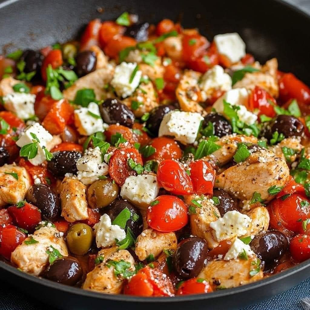 Low-Carb Greek Chicken Skillet with Feta & Olives.