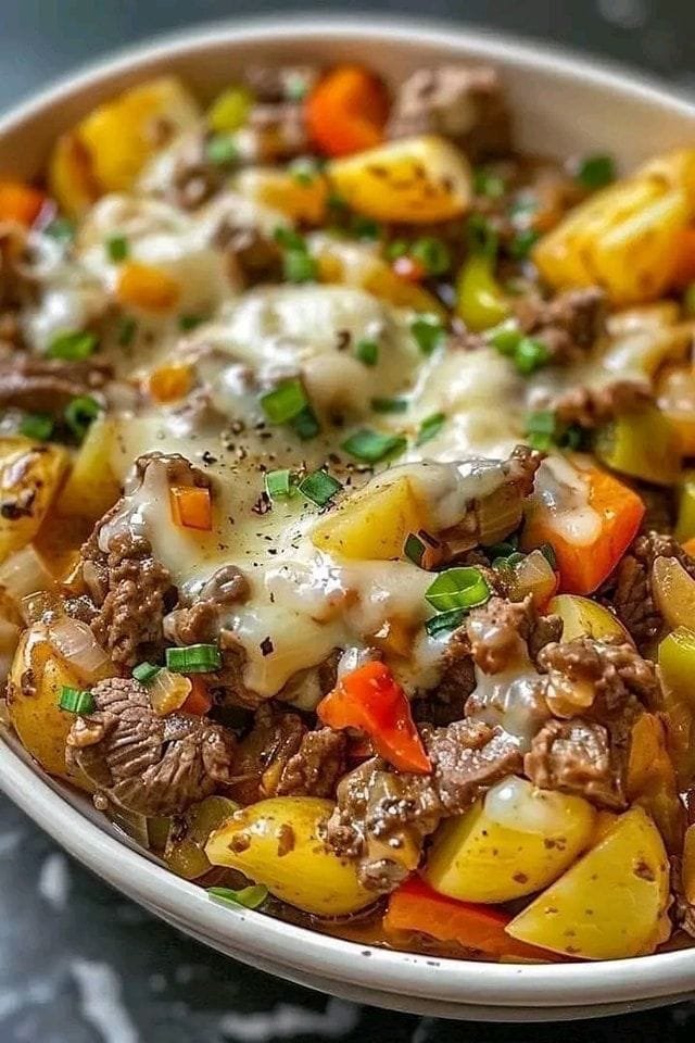 Crockpot Cheesesteak Potato Casserole 🥔🥩🧀