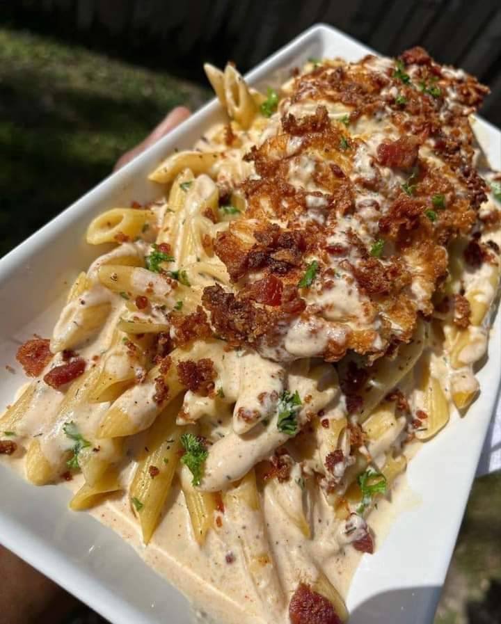 Cheddar Bacon Ranch Chicken Alfredo Pasta