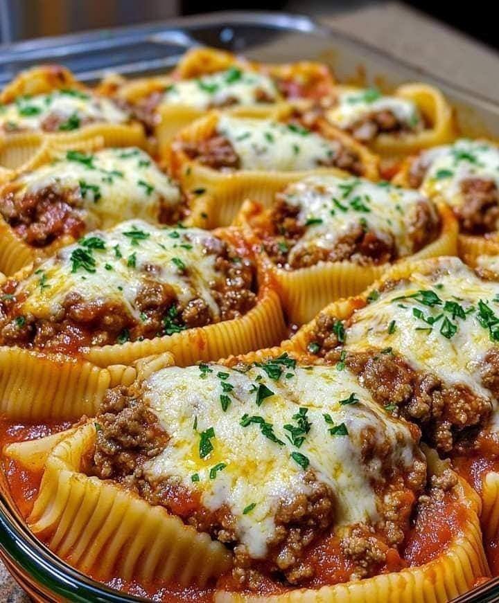 These Stuffed Pasta Shells are packed with flavor and topped with melted cheese for a perfect finish. Enjoy!